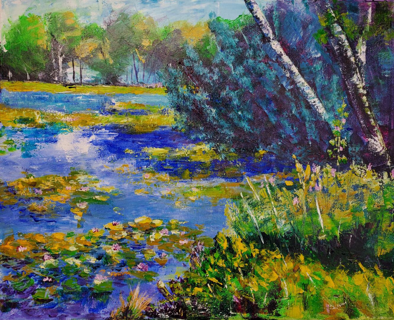 I love to chase the light, so the majority of my works are landscapes, but you never know when a still life or abstract will sneak in. An experimental process with art, has become a norm for me. I love to learn a new technique and learn about the properties of the mediums I use.